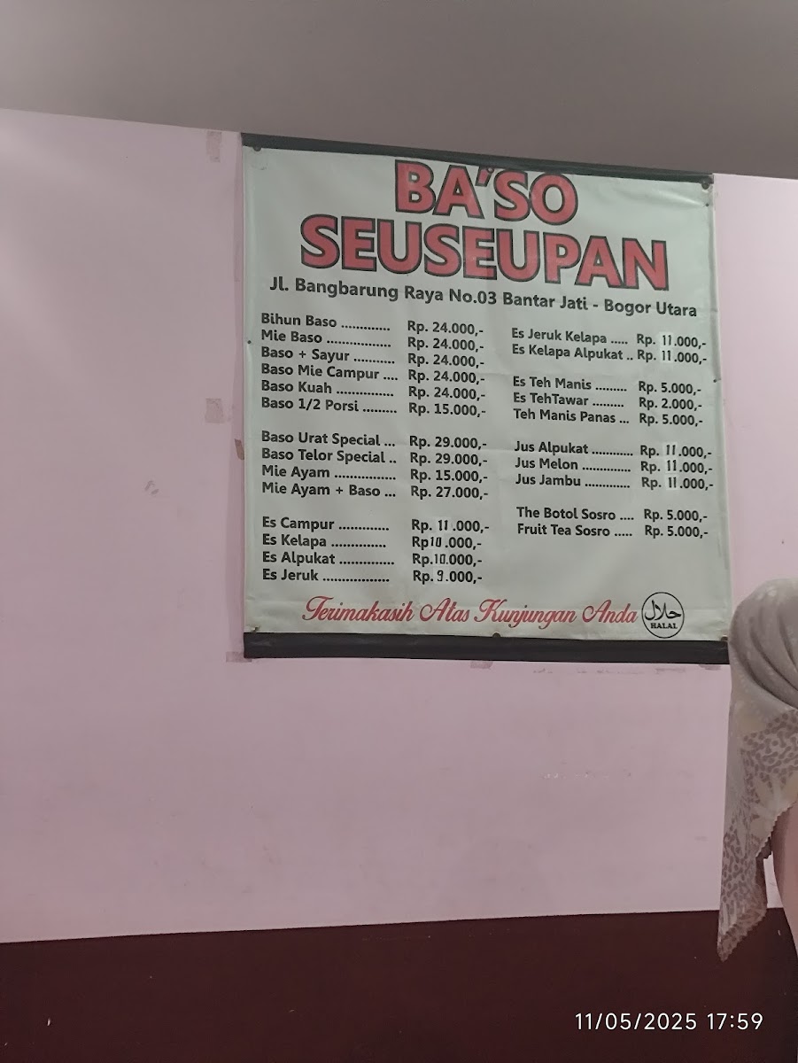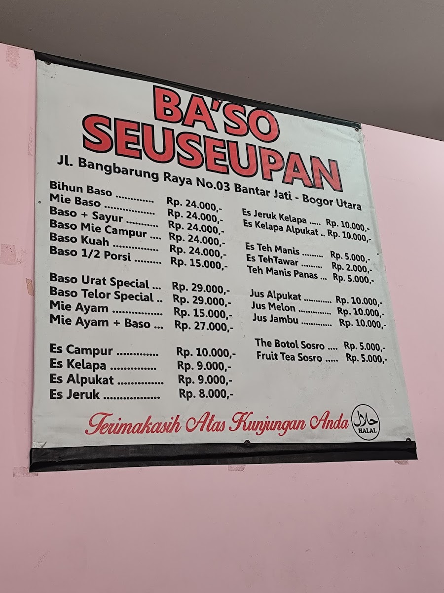 Welcome to Ba'so Seuseupan, a gem located at Jl. Bangbarung Raya in Bogor, known for its legendary meatball soup, or Bakso. The menu boasts a variety of offerings, but the standout is undoubtedly the Baso Urat Special, characterized by its hearty meatballs and rich flavors. Reviewers rave about the chewy texture of the meatballs, complemented perfectly by a light, savory broth and unique fried beef fat, which adds a delightful twist.